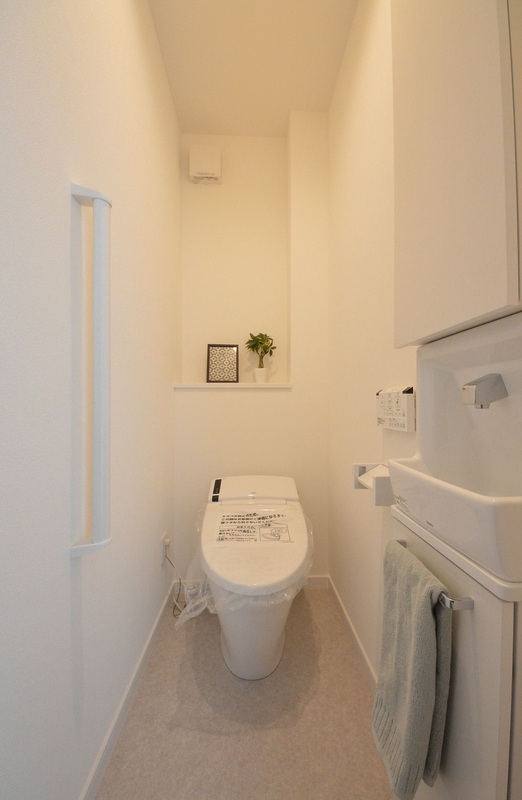 埋め込み収納付き。さらに壁付手洗い器付き...