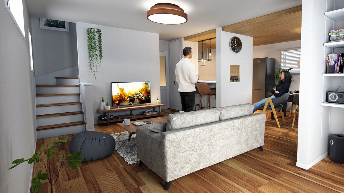 1号棟はリビングから2階にあがる設計で家族のコミュニケーション...