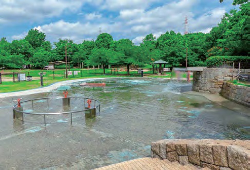 ロングスライダーや大型木製遊具、芝生広場などがある東側、水遊びが楽しめる「わんぱく池」がある西側が連橋で結ばれており、1日中楽しめる公園です。