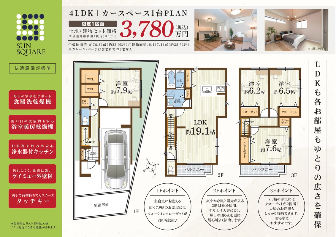 魅力1 【1区画のみ】ファミリーもゆとりの3階建×4LDK。周辺環境が揃い、お子様にも◎