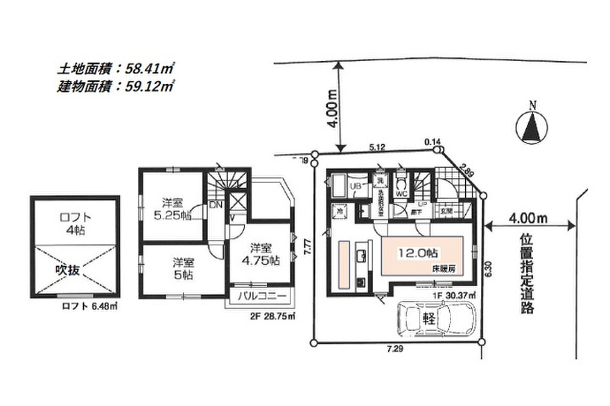 | 建物面積 | 59.12m2 | 土地面積 | 58.41m2 |