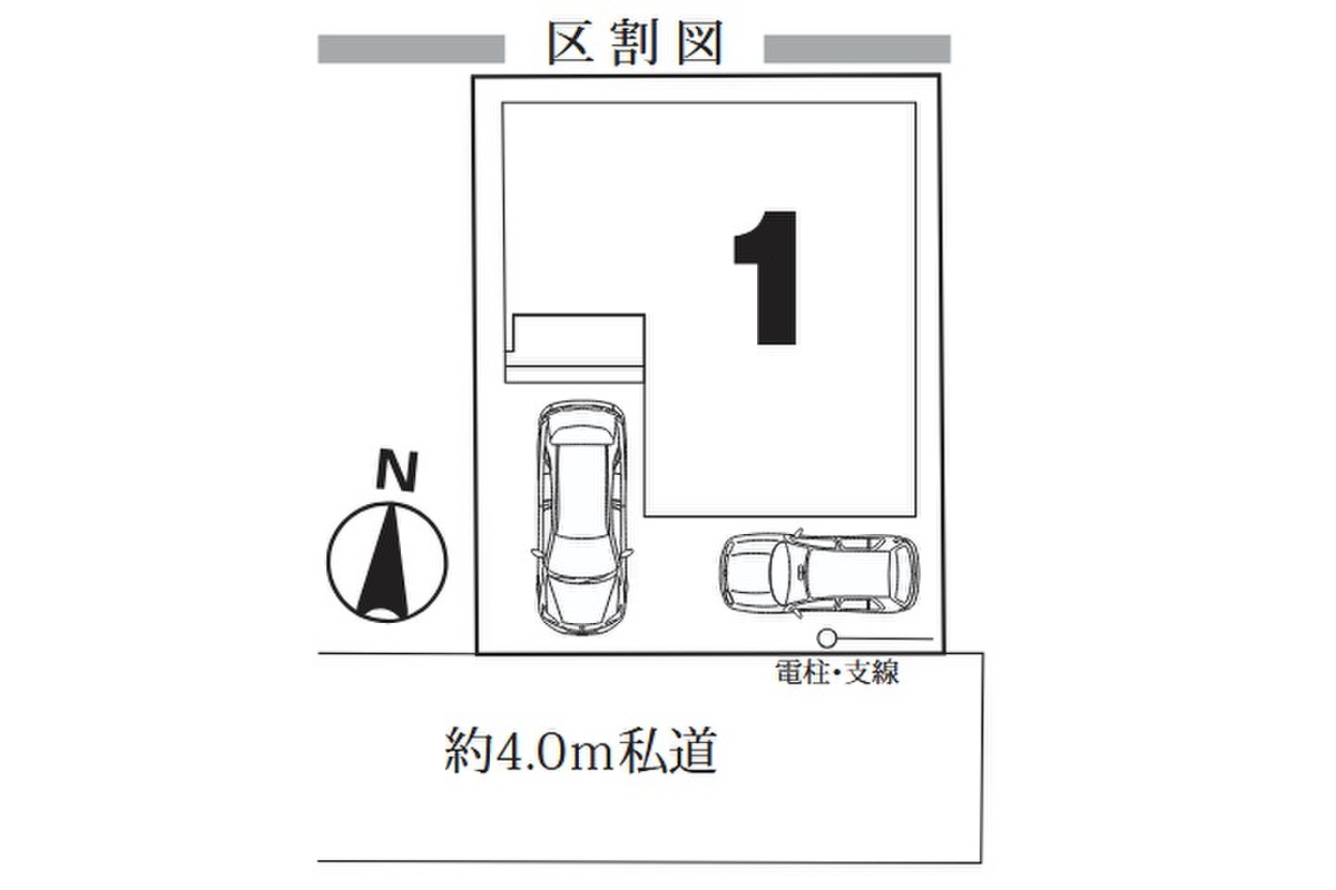 | 駐車場 | 1台 ~ 2台(カースペース) | 道路の幅員 | 南側4m私道、私道持分13.5m2 |