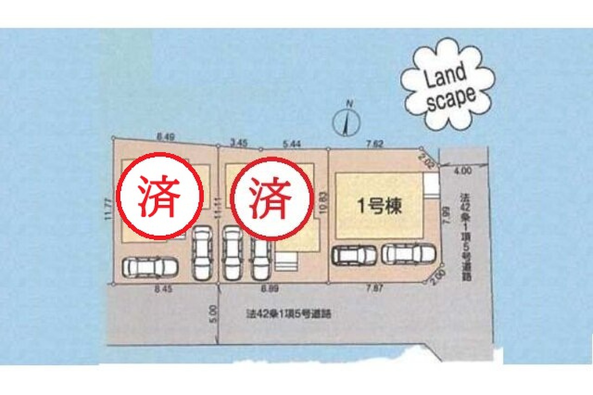 | 駐車場 | 1台 ~ 2台(カースペース) | 道路の幅員 | 南側5.0m私道、東側4.0m私道 |