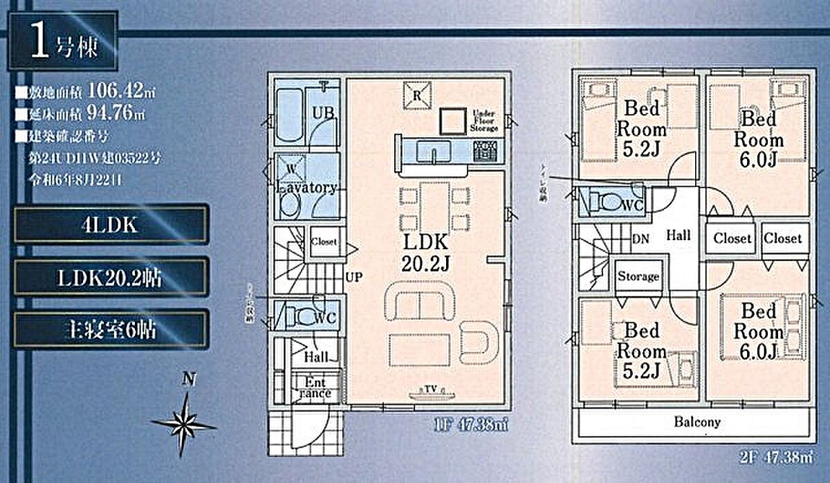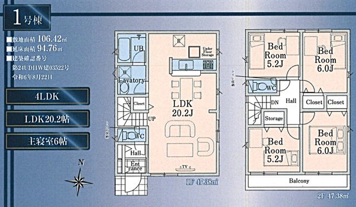 | 建物面積 | 94.76m2 | 土地面積 | 106.42m2 |