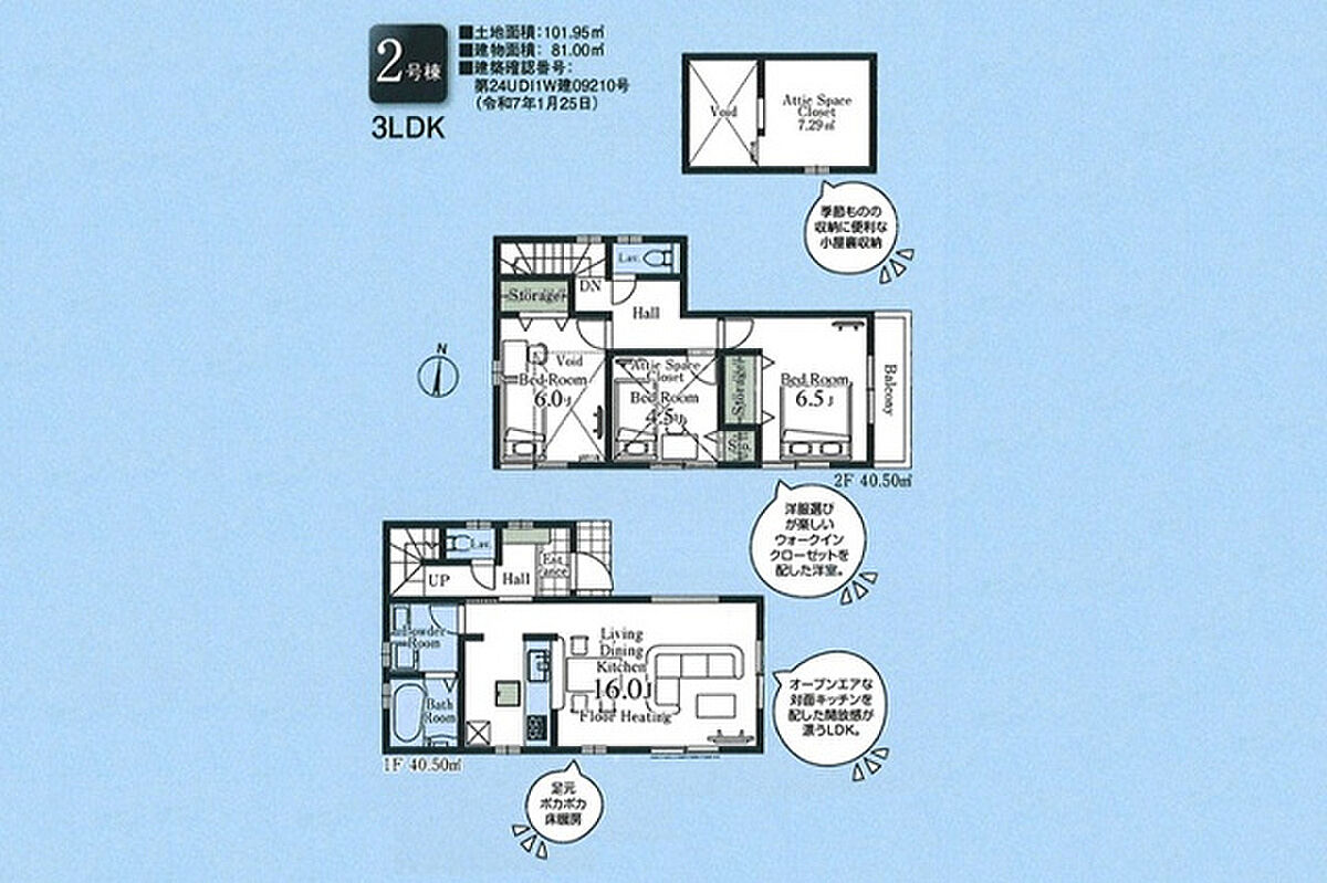 ●住宅性能評価書7項目高等級取得(耐震等級3)●カースペース2台●南向き●全居室2面採光・収納●浴室乾燥機●床暖房●浄水器●小屋裏収納 他