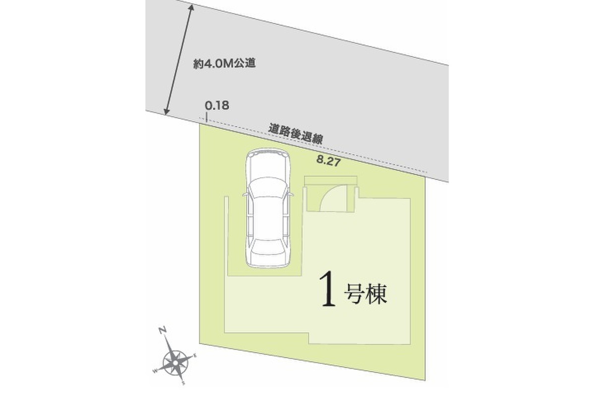 | 駐車場 | 1台(ビルトインガレージ) | 道路の幅員 | 北東側4.0m公道 |