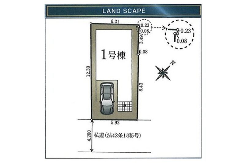 | 駐車場 | 0台 ~ 1台(カースペース) | 道路の幅員 | 南東側4.2m私道、私道持分1.74m2 |