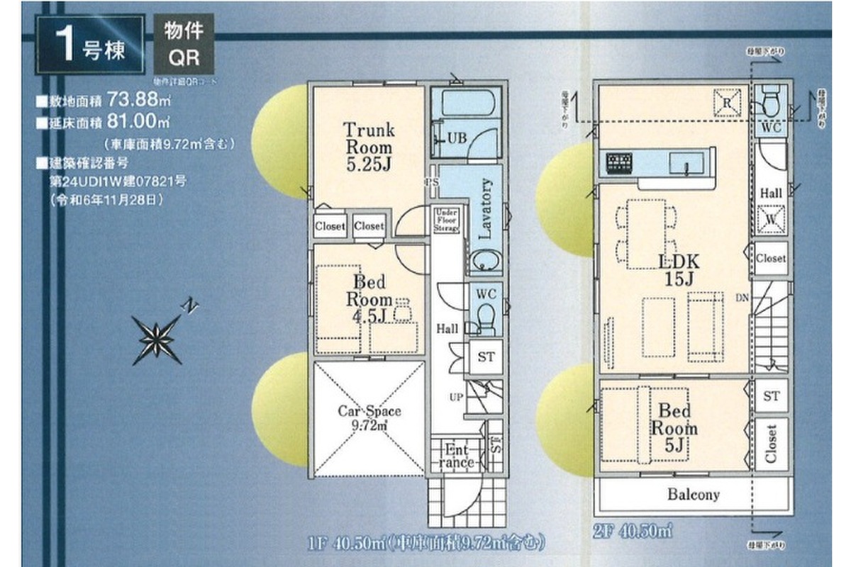| 建物面積 | 81.00m2 | 土地面積 | 73.88m2 |