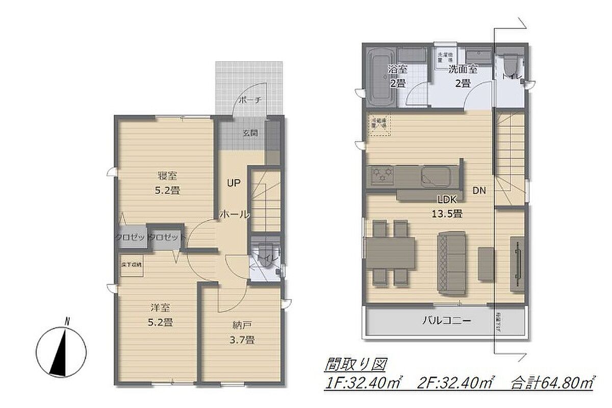 | 建物面積 | 64.80m2 | 土地面積 | 83.30m2 |