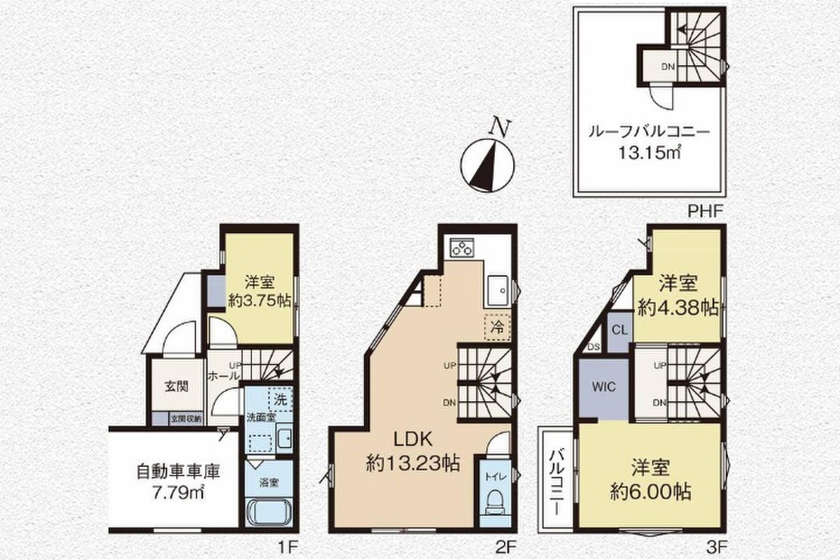 新築一戸建て 3階建て3LDK、13.15m2の開放感あるルーフバルコニーが嬉しいポイントのお住まい
