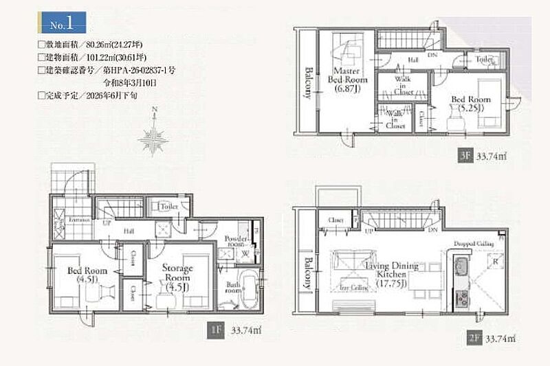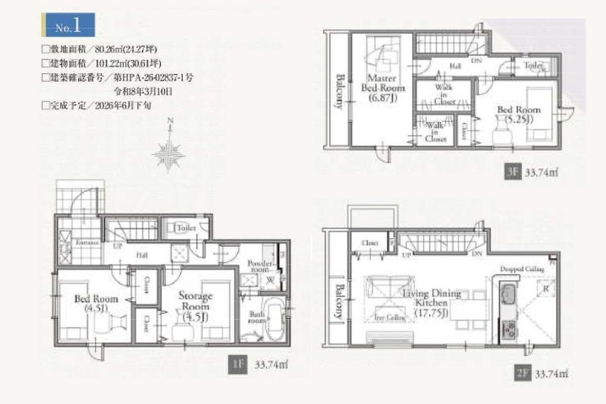 | 建物面積 | 101.22m2 | 土地面積 | 80.26m2 |