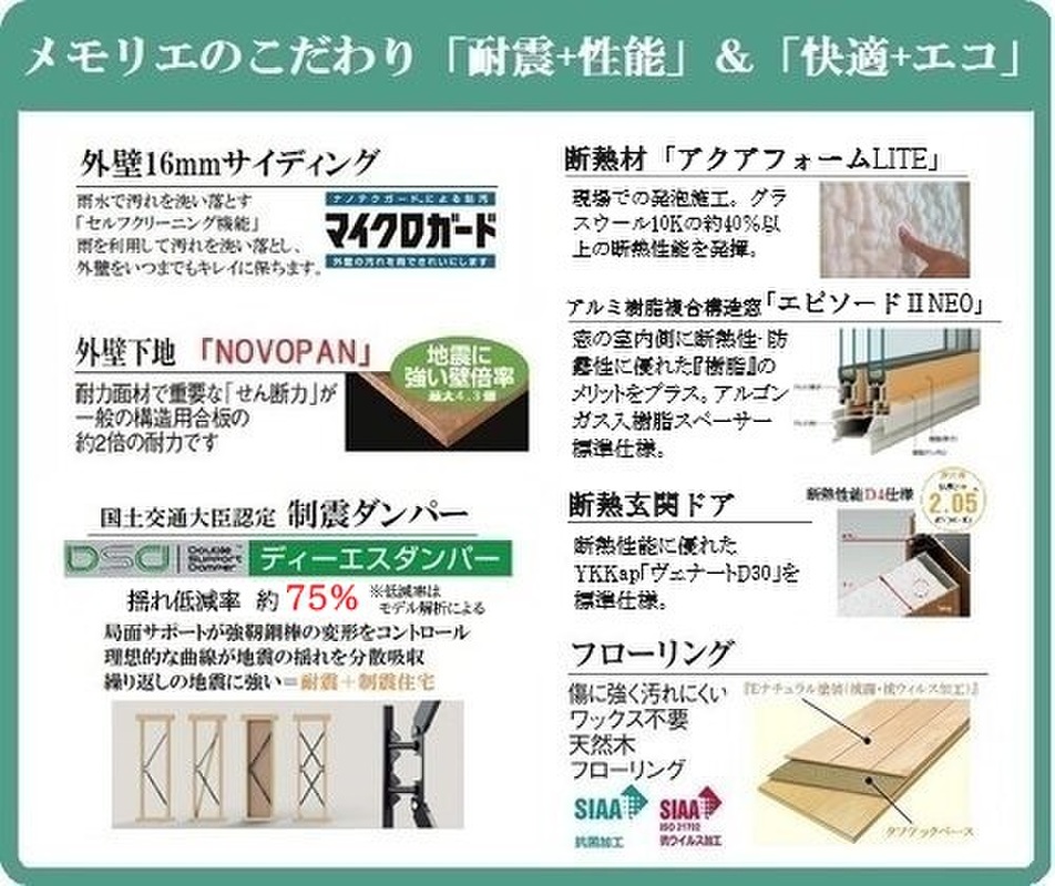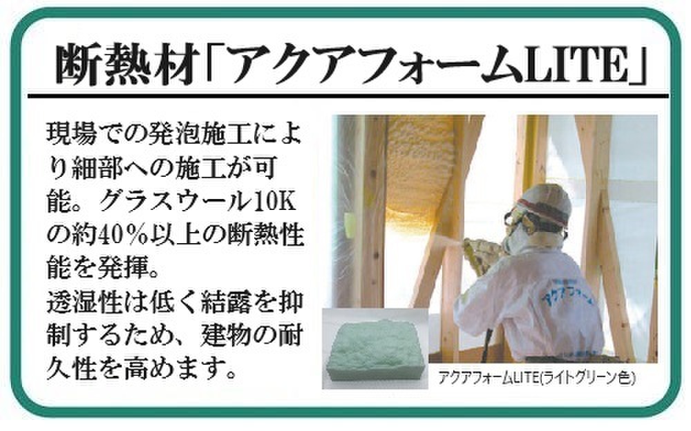 ●高気密高断熱材の発泡ウレタンフォームを使用※省エネ基準適合●高断熱窓はアルミと樹脂のハイブリッド構造、夏は涼しく冬は温かです●外壁は雨で汚れを洗い落とす16mmサイディング
