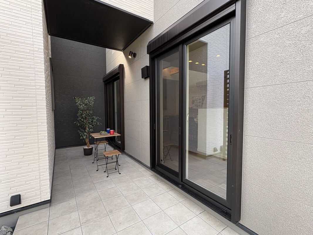 プライベート感のある中庭テラスと収納充実の玄関で理想的な住まい