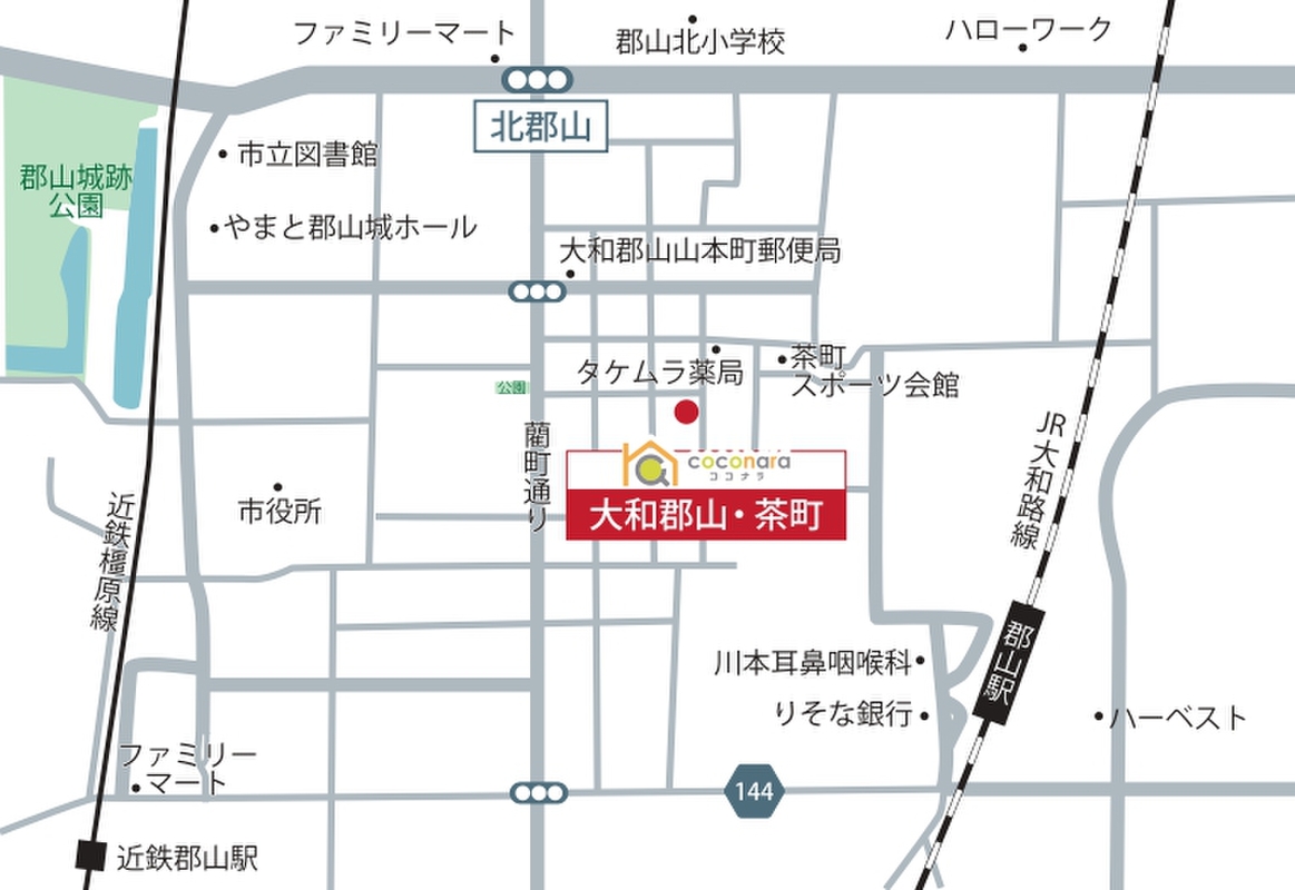 JR関西本線「郡山」駅 徒歩7分 近鉄橿原線「近鉄郡山」駅 徒歩13分 |
