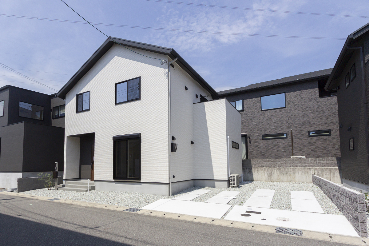 コミュニティ形成がしやすい全32区画のニュータウン!A5号地モデルハウス、A6号地モデルハウスの2棟公開中!KANJUの家をぜひご体感ください。プランづくりから叶う自由設計区画も分譲中です。