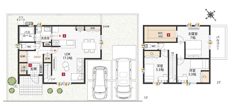 ・玄関~リビング、玄関~洗面室~キッチンの2WAY動線!室内の移動がスムーズです。
