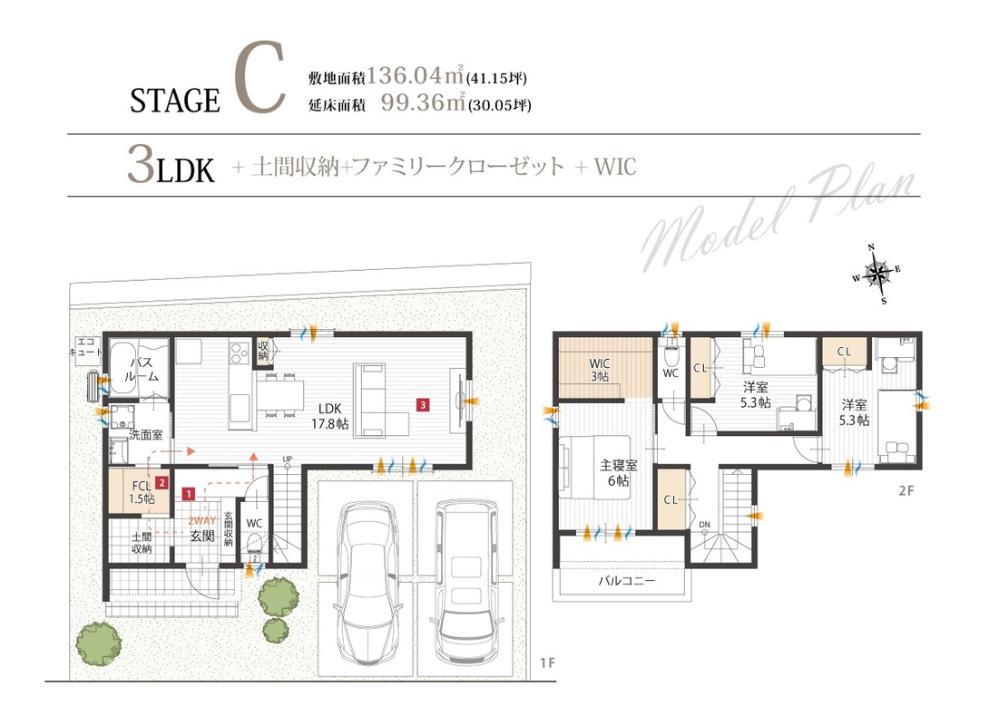 魅力2 【C号地モデルハウス完成済】玄関から機能的な帰宅動線を描く邸。LDKは3面採光!