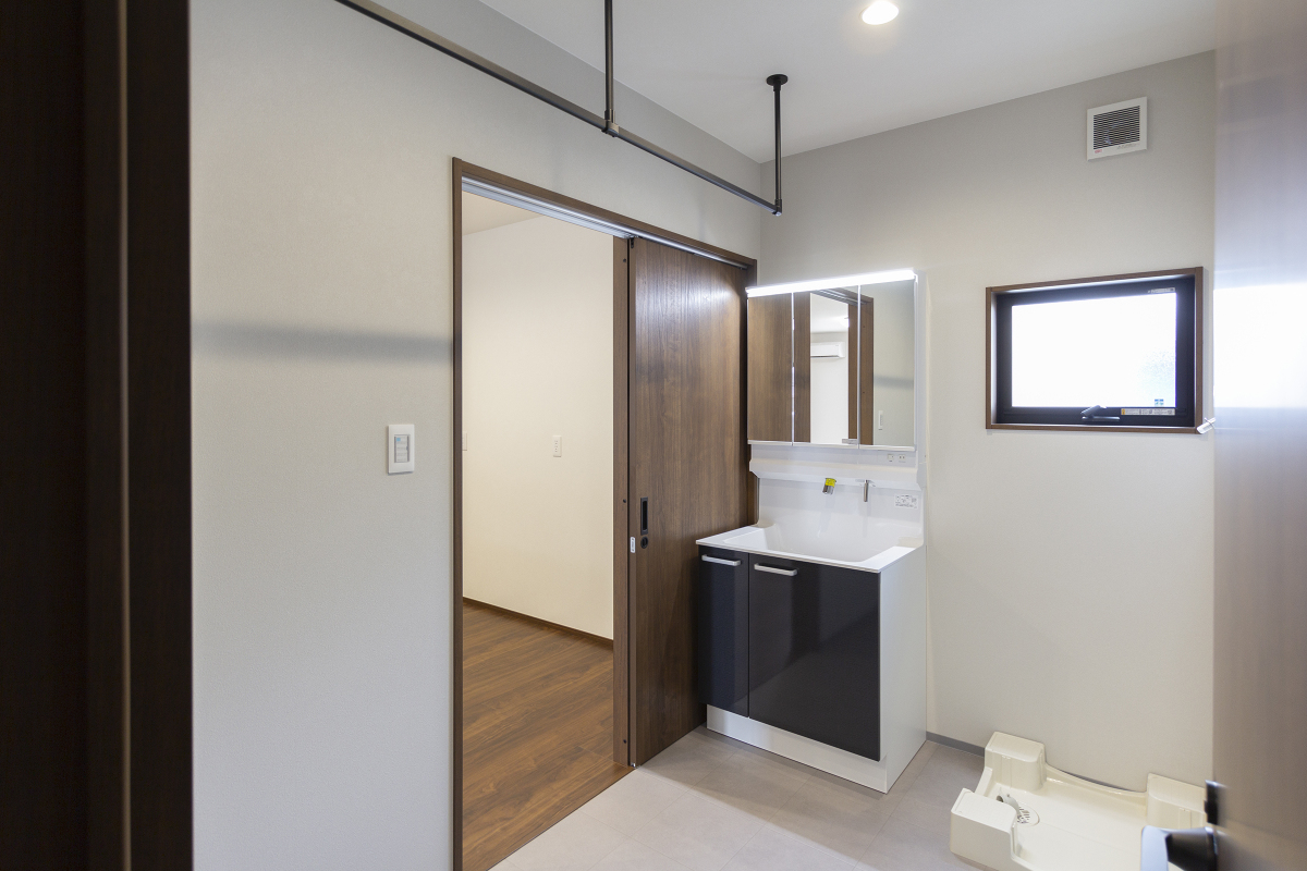 ・洗面室は室内物干付き。ホール、キッチンからの2WAYで家事効率もUP!