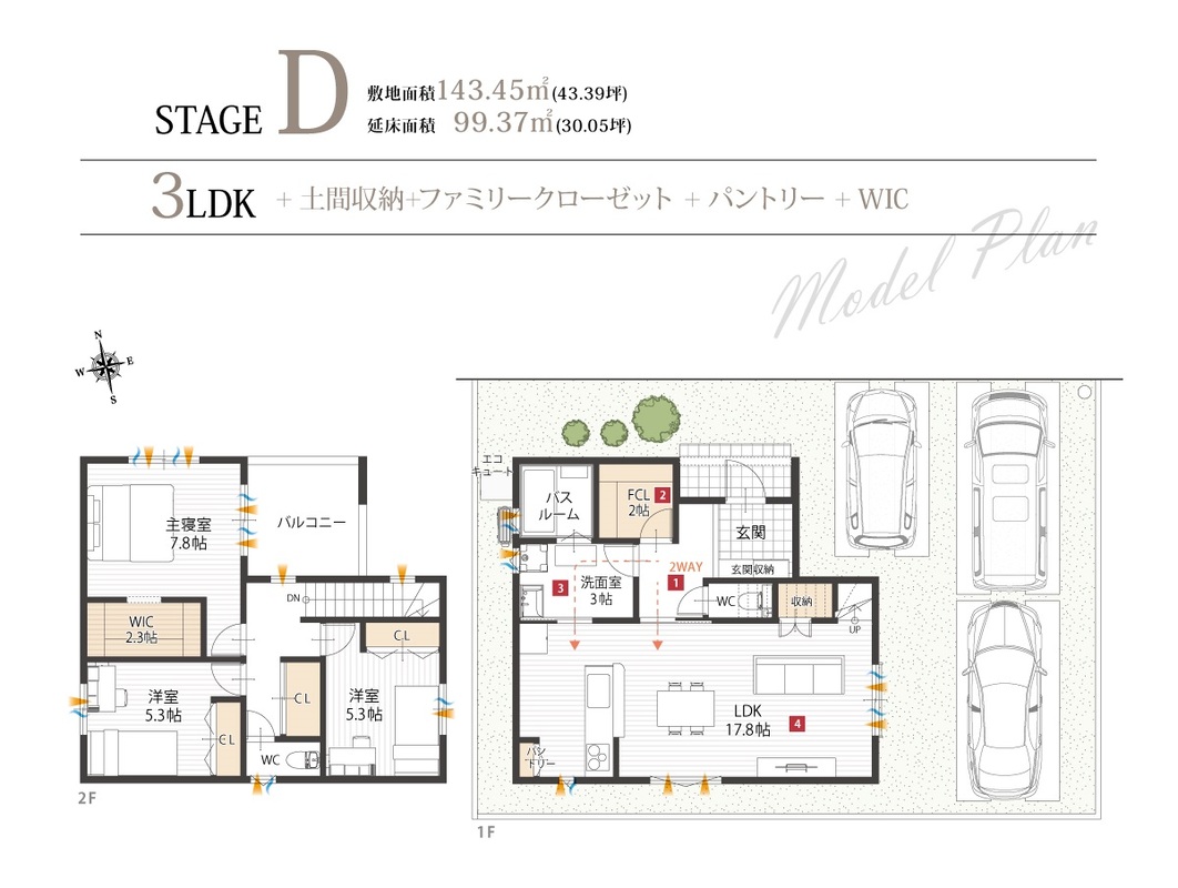 魅力3 【D号地モデルハウス完成済】家事ラクを叶える回遊動線を描き、FCLなど収納充実!