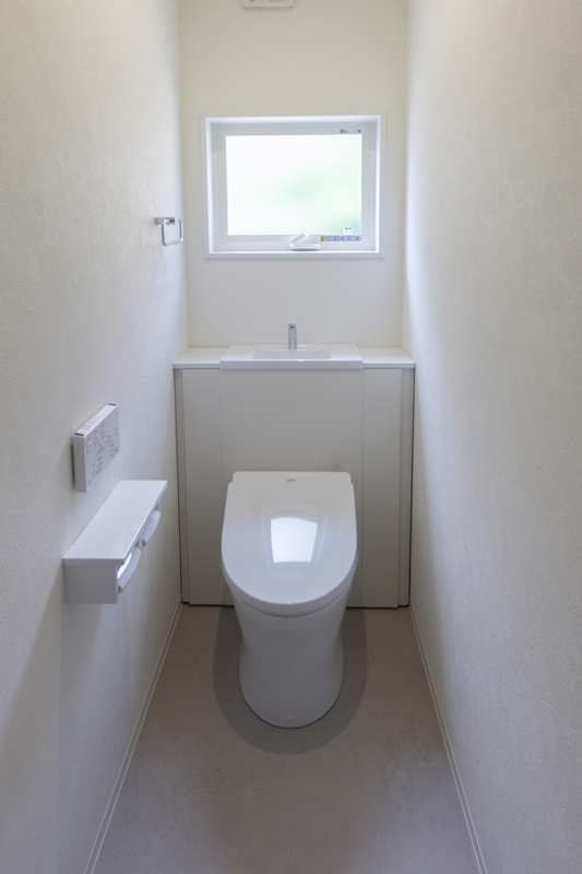 1階トイレはタンクが視界に入らずスッキリ。1階、2階の各フロアにトイレを設けることで、来客時にもご案内しやすく、快適に使える温水洗浄便座付きです。