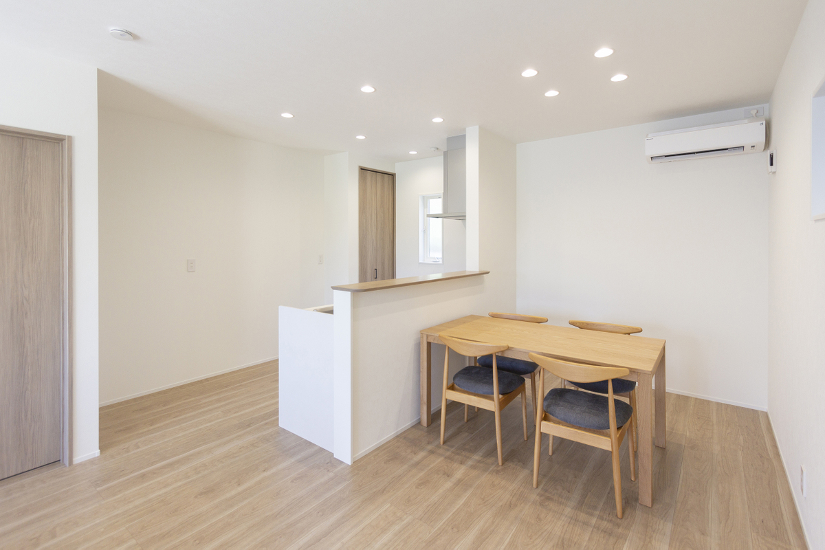 ダイニングやキッチンのどこにいても視界が抜け、ホワイト×明るい...