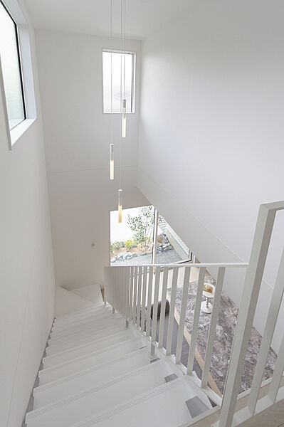 吹抜やオープン階段による心地よい光や風に包まれるLDKで寛ぎの...