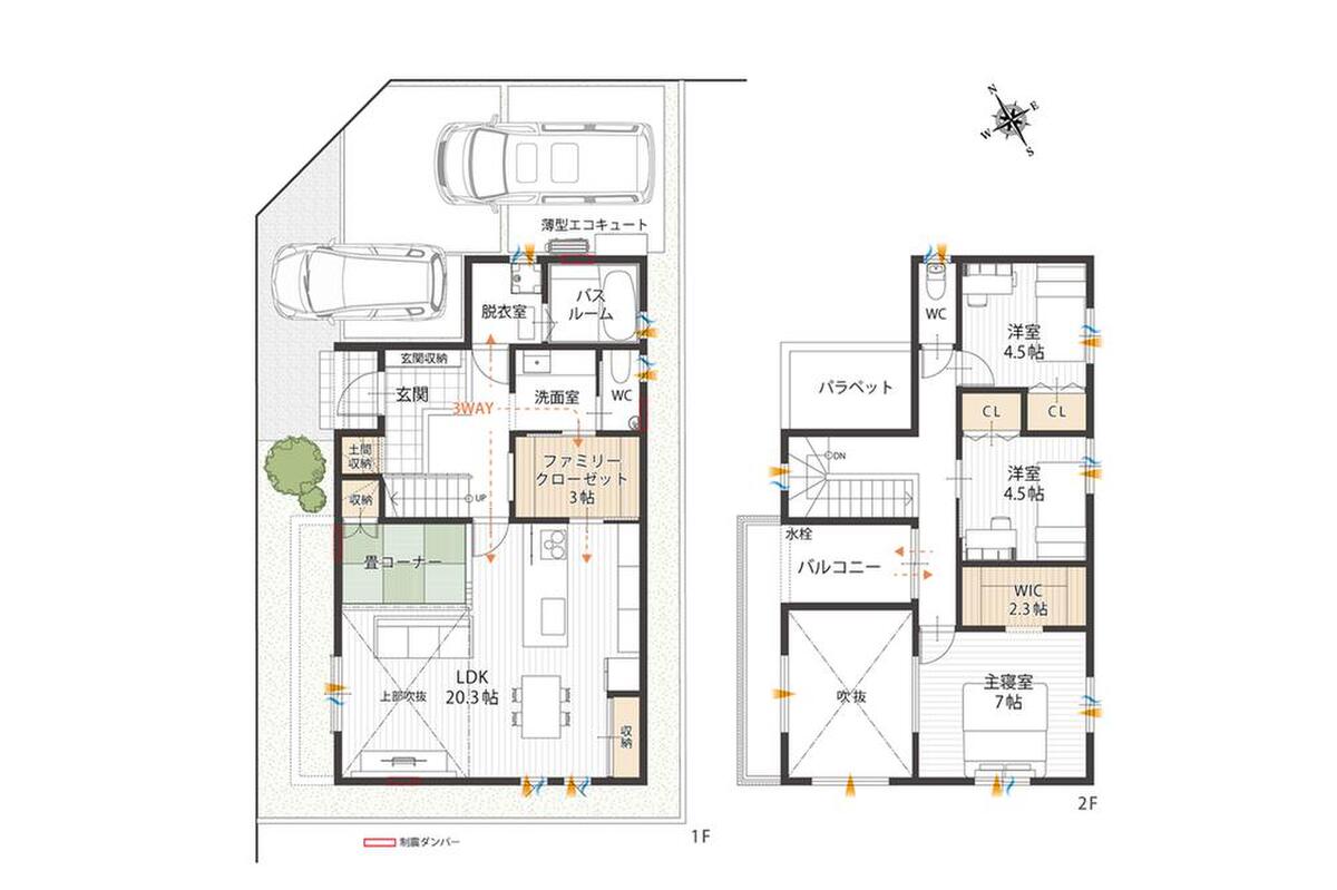 | 駐車場 | 1台 ~ 2台(車種による) | 道路の幅員 | 約6~8m舗装道路 |