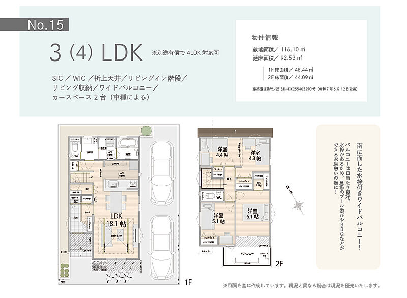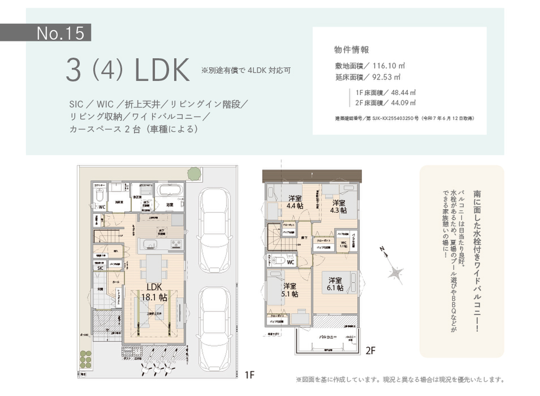 | 建物面積 | 92.53m2 | 土地面積 | 116.19m2~118.10m2 |