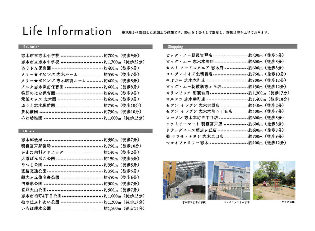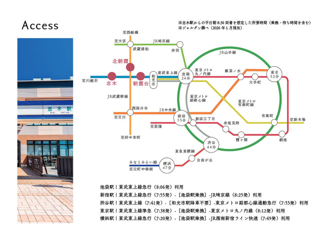 - 東武東上線「志木」駅 徒歩10分JR武蔵野線「北朝霞」駅 徒歩17分東武東上線「朝霞台」駅 徒歩17分