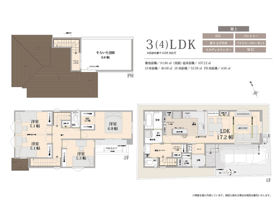 - ※完成予想図やCG合成画像は、門塀・植栽・庭・外観等、実際とは多少異なる場合があります。
