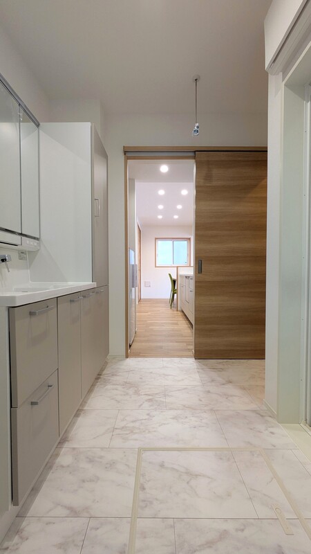 1Fは玄関からもLDKからも洗面室へ移動が可能で、家事動線もスムーズです。LDKには収納スペースも設けており、消耗品や掃除道具の収納にも困りません。2Fには家族の衣類をたくさん収納できるファミリークローゼットがあります。ホールからも主寝室からも出入りが可能です。