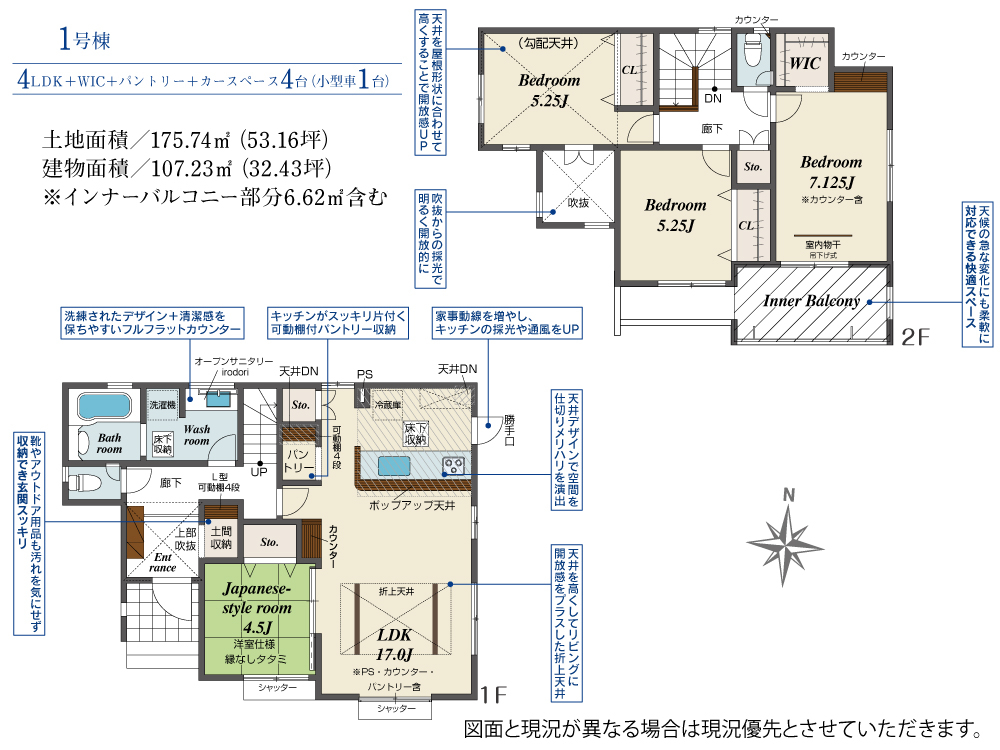 | 建物面積 | 107.23m2(約32.43坪) | 土地面積 | 175.74m2(約53.16坪) |