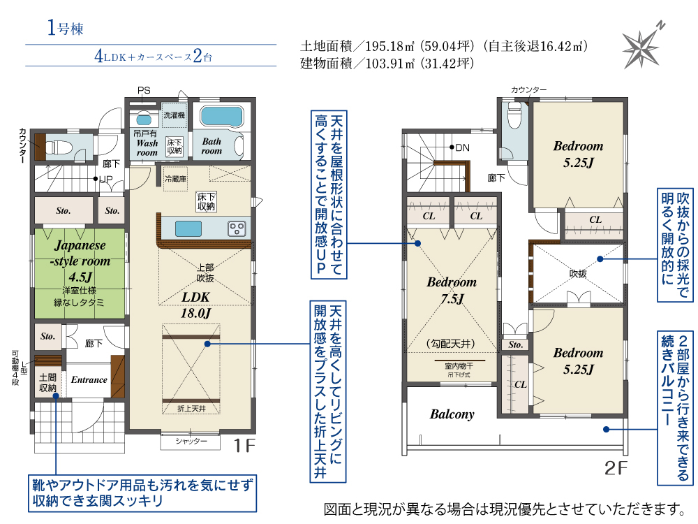 | 建物面積 | 103.91m2(約31.43坪)~104.12m2(約31.49坪) | 土地面積 | 187.46m2(約56.70坪)~195.18m2(約59.04坪) |