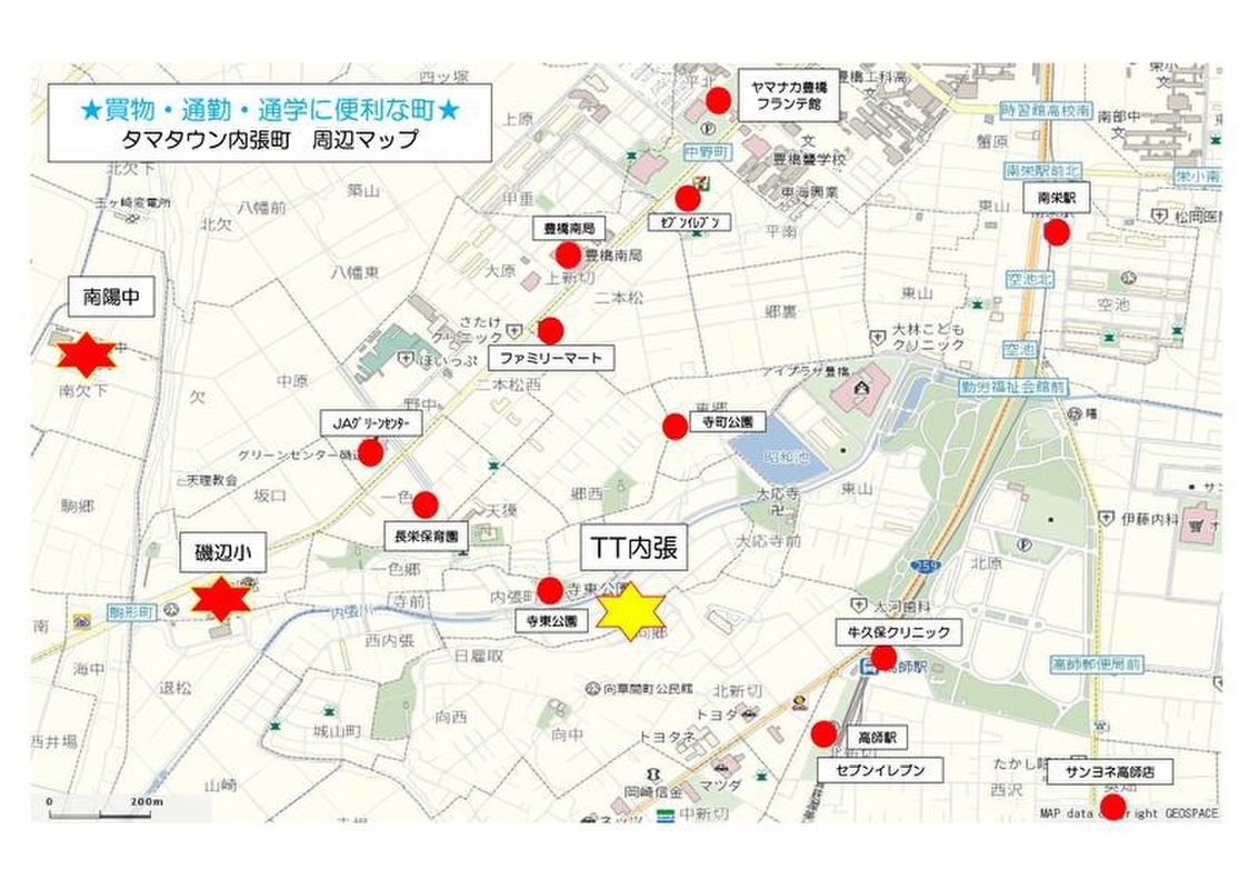 豊橋市立磯辺小学校まで徒歩約10分、豊橋市立南陽中学校まで徒歩約19分、豊鉄渥美線「高師駅」まで徒歩約8分!