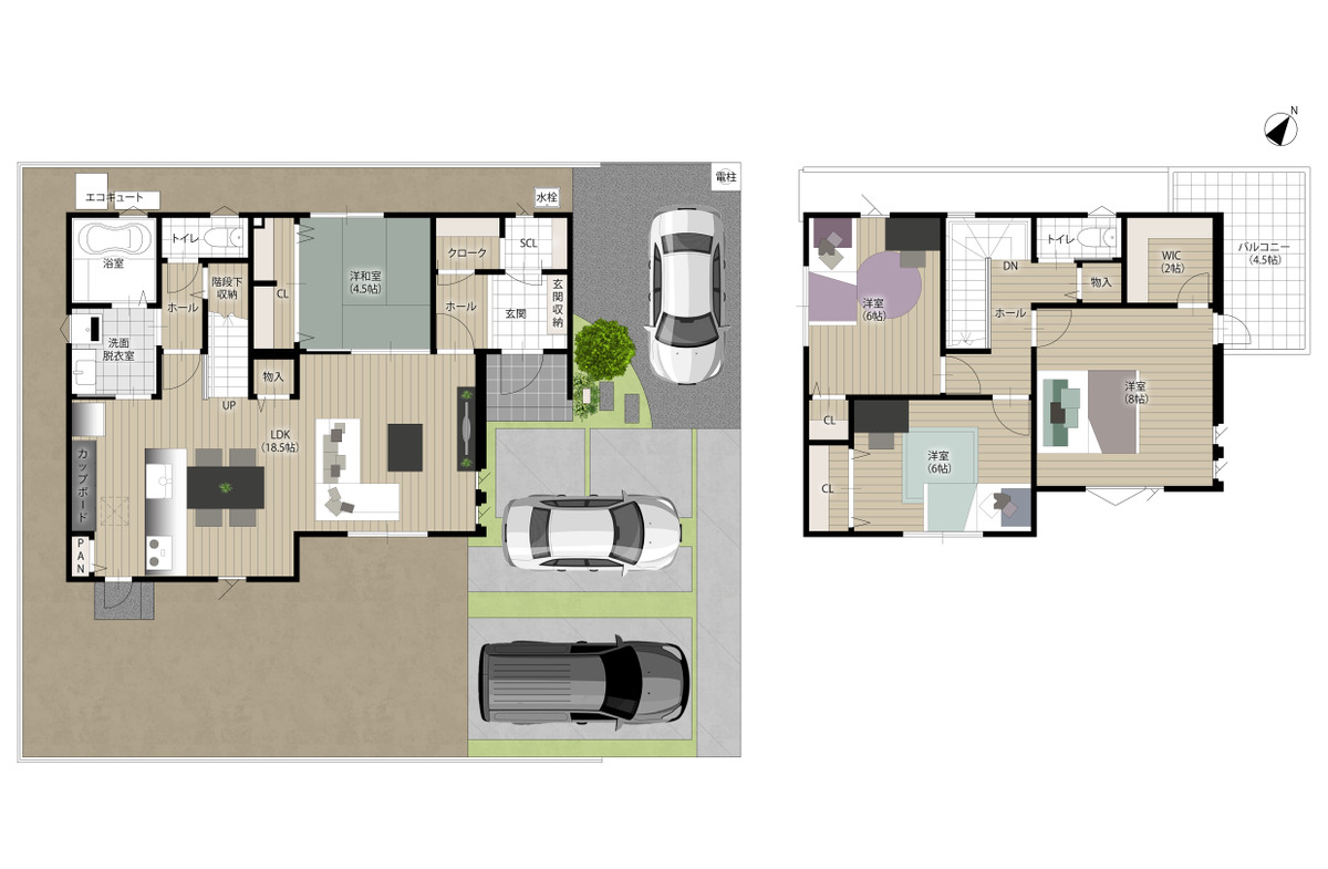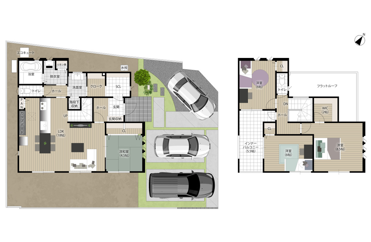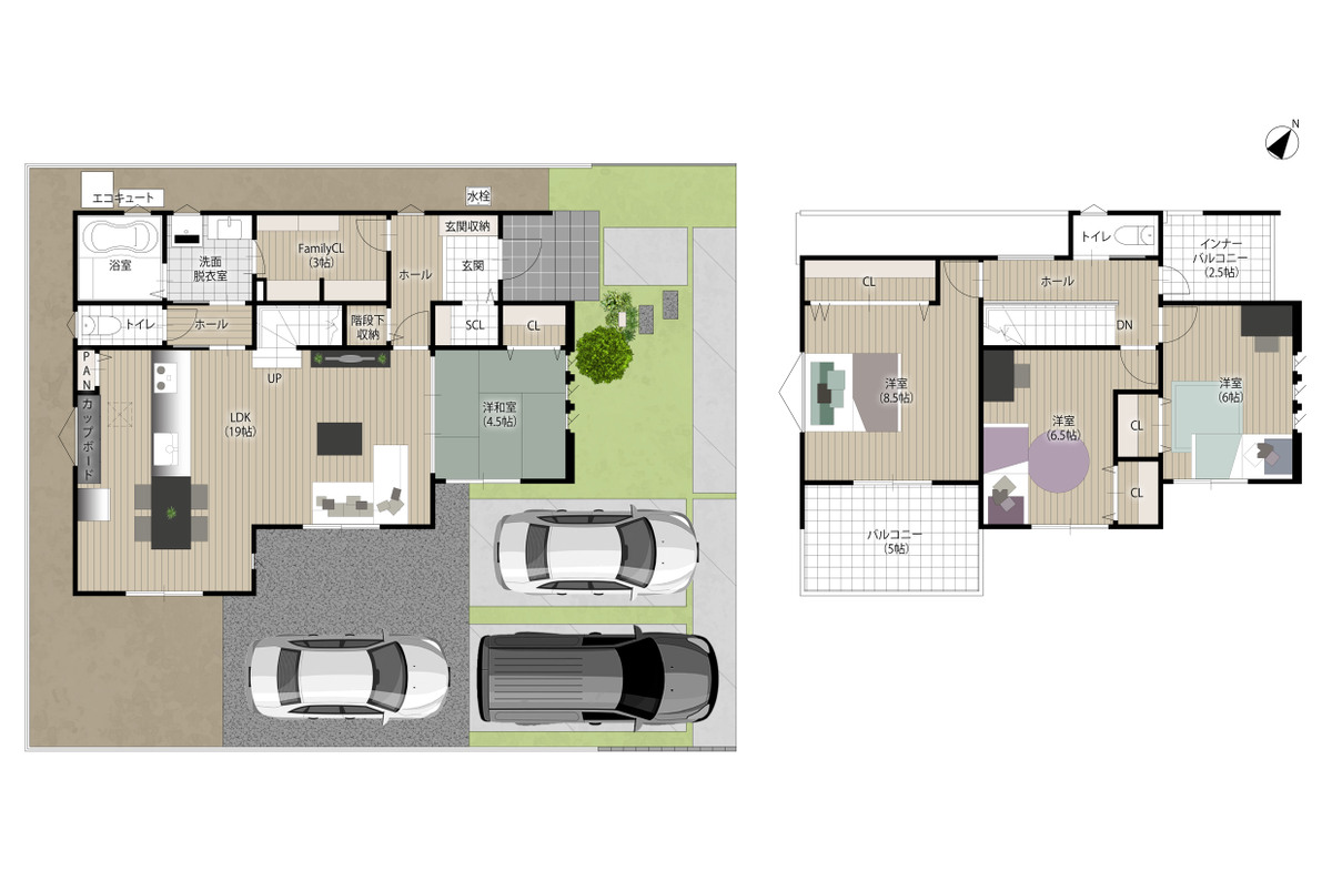 - ※完成予想図やCG合成画像は、門塀・植栽・庭・外観等、実際とは多少異なる場合があります。