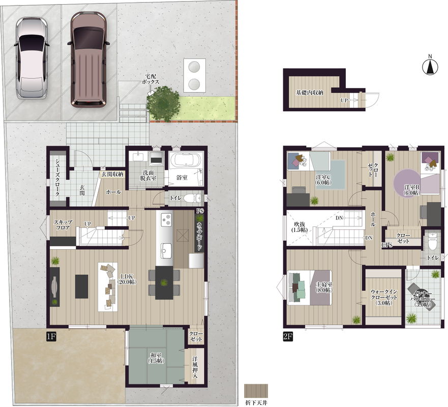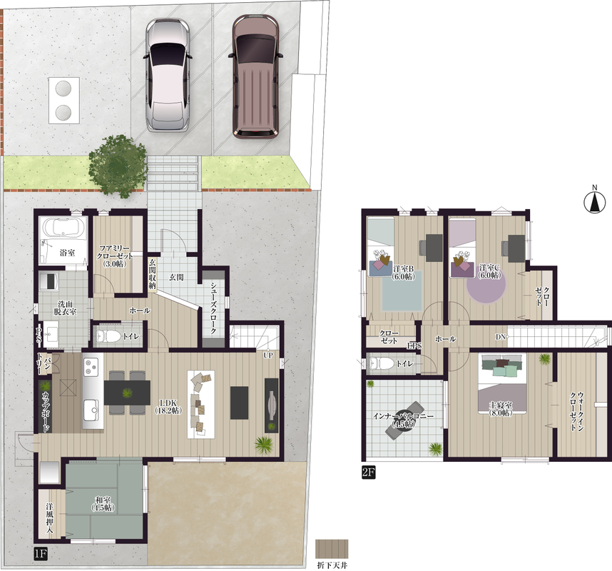 - ※完成予想図やCG合成画像は、門塀・植栽・庭・外観等、実際とは多少異なる場合があります。