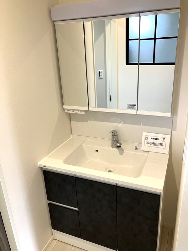 スタイリッシュで多機能な洗面台。三面鏡の...