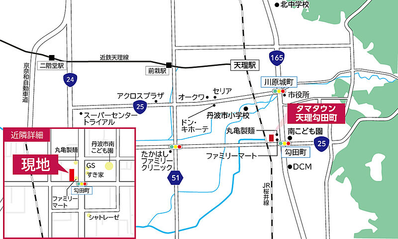 ■JR・近鉄天理駅まで徒歩約18分、スーパーサンディまで徒歩約2分■丹波市小学校まで徒歩約12分と嬉しい充実した周辺生活環境