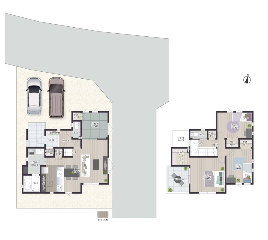 - ※完成予想図やCG合成画像は、門塀・植栽・庭・外観等、実際とは多少異なる場合があります。