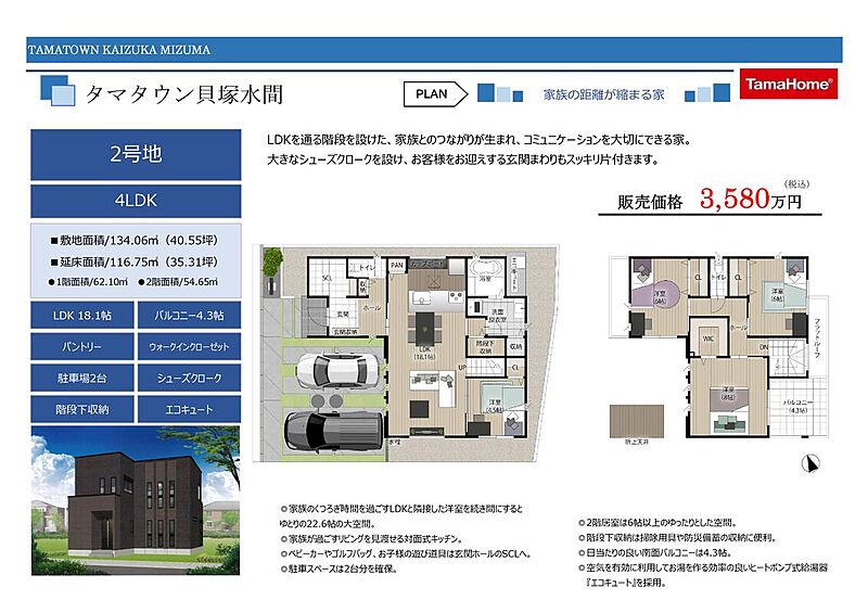 2号地 間取り 4LDK 価格 3380万円 建物面積 116.75m2 土地面積 134.06m2 -