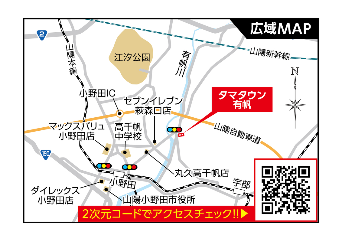 JR山陽本線「小野田」駅 舟木鉄道「有帆小前」バス停 徒歩2分 |