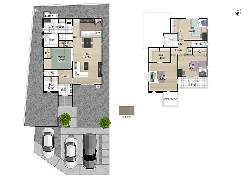 - ※完成予想図やCG合成画像は、門塀・植栽・庭・外観等、実際とは多少異なる場合があります。