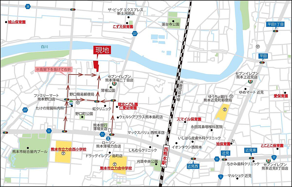 JR鹿児島本線「西熊本」駅 徒歩20分 JR鹿児島本線「熊本」駅 JR鹿児島本線 熊本駅まで車で約7分 |