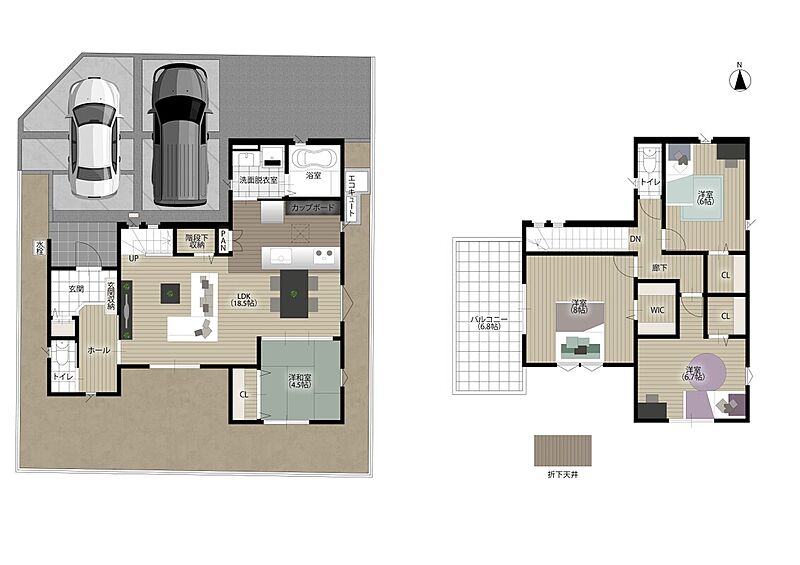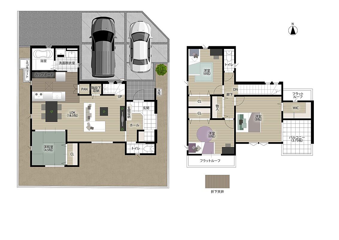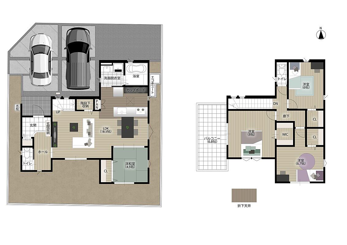- ※完成予想図やCG合成画像は、門塀・植栽・庭・外観等、実際とは多少異なる場合があります。
