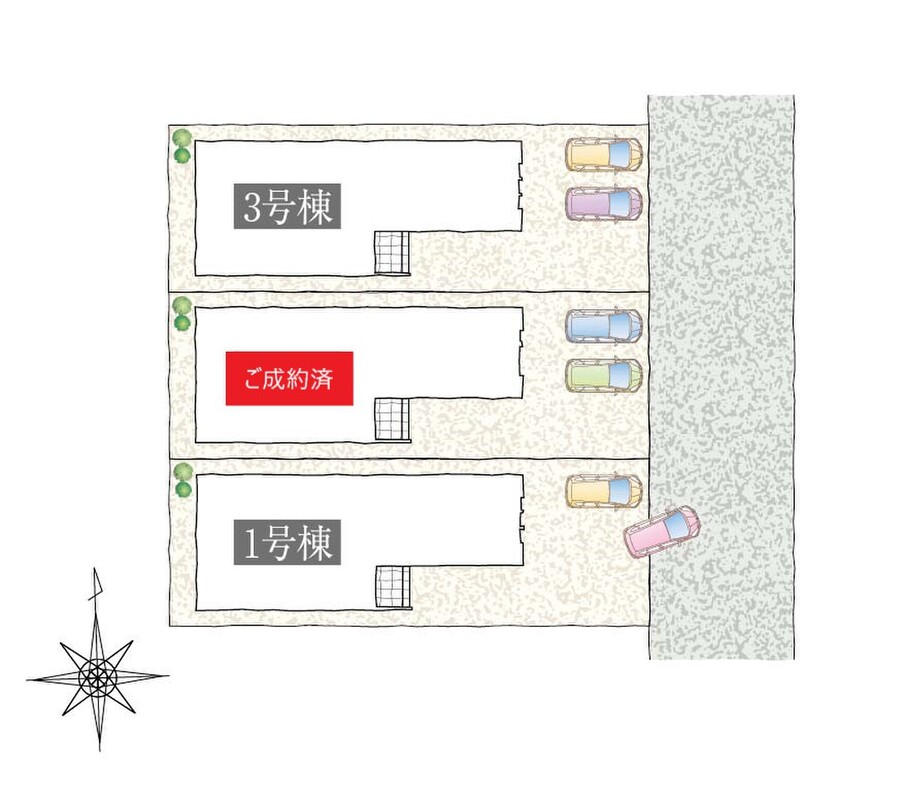 | 駐車場 | 1台 ~ 3台(※車種によります。) | 道路の幅員 | 6m |