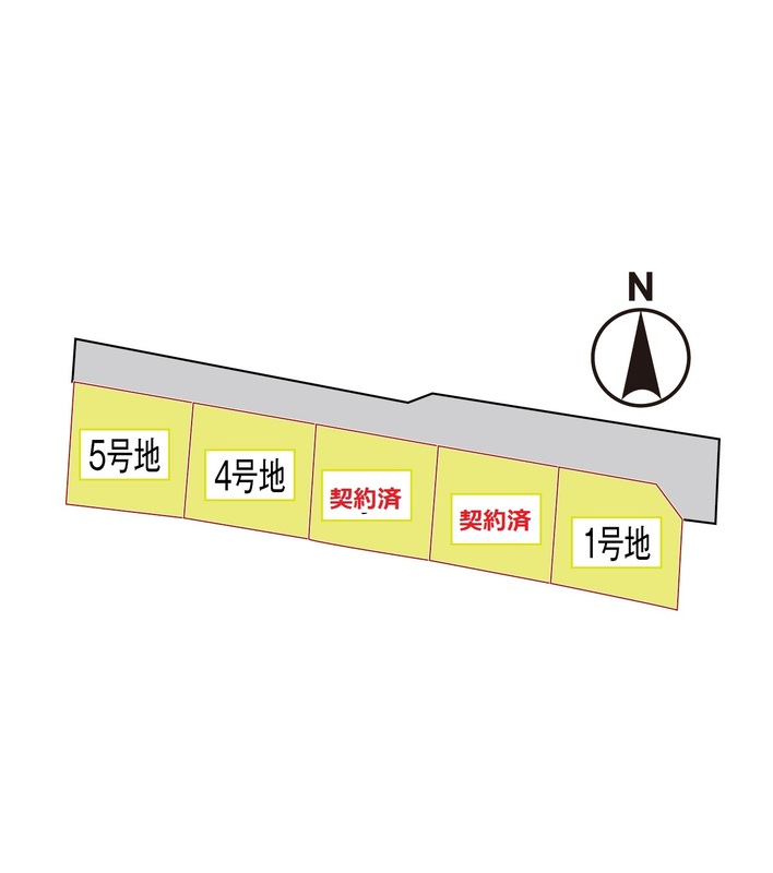 | 駐車場 | 2台 | 道路の幅員 | 北側:幅員約5.0m(5号地のみ私道負担36m2)、東側:幅員約4.0m |