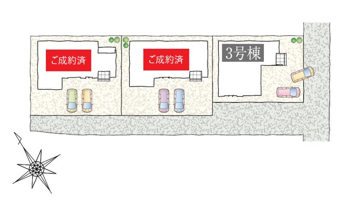 | 駐車場 | 2台 ~ 3台 | 道路の幅員 | 南側5m、分譲地内開発道路4m |