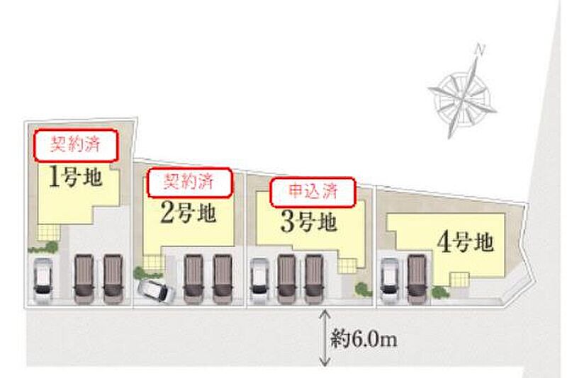 | 駐車場 | 1台 ~ 3台 | 道路の幅員 | 北側6m |