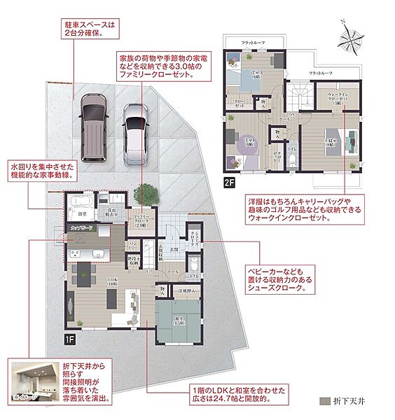 - ※完成予想図やCG合成画像は、門塀・植栽・庭・外観等、実際とは多少異なる場合があります。