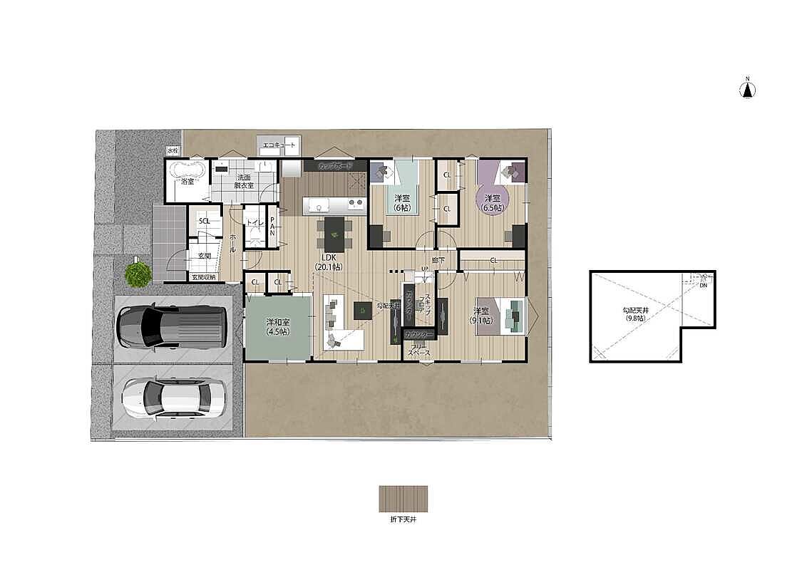 - ※完成予想図やCG合成画像は、門塀・植栽・庭・外観等、実際とは多少異なる場合があります。